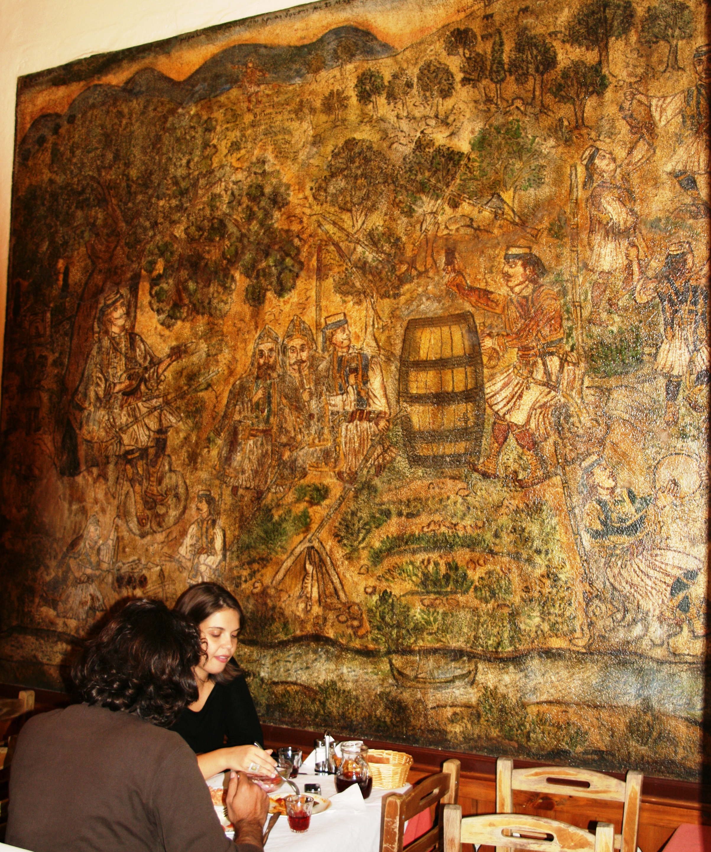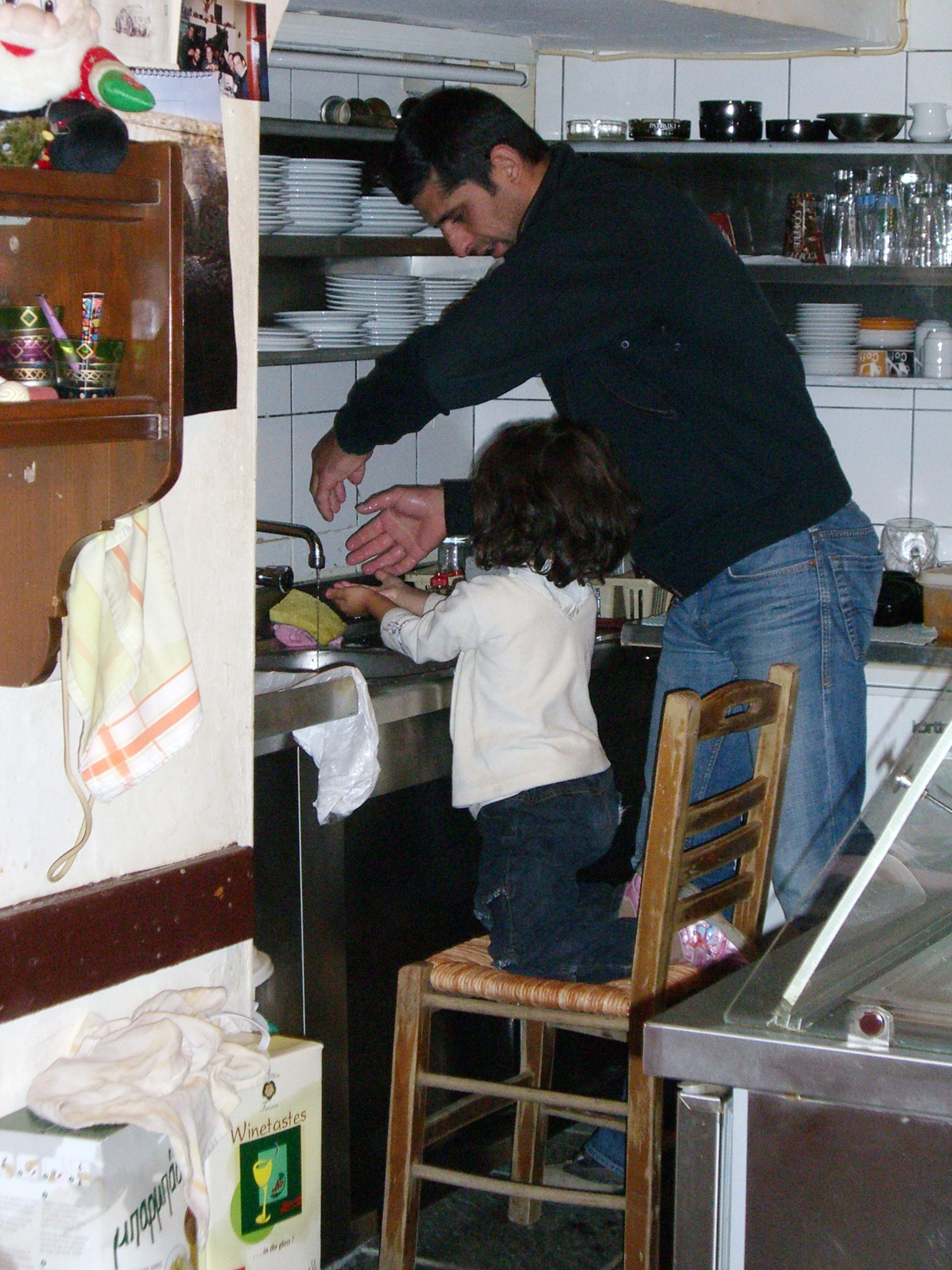 The father points out the painting behind us and tells of the local artist that used that painting to pay for meals, “And now his art is in the art museum in Athens.” He says with pride of a local whose history goes beyond the village limits.